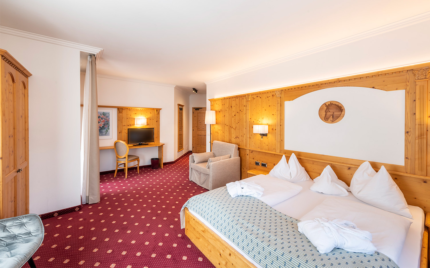 Your comfort at our hotel in Sterzing lies very close to our hearts! So that your fun-packed day can come to the perfect conclusion, our junior suites and bedrooms in Sterzing offer everything possible for a peaceful and relaxing night’s sleep. This is your Dolomites accommodation: lovingly decorated to achieve a comfortable, homey atmosphere, to quieten all the senses and to allow you to build up your reserves for another exciting day of adventures!